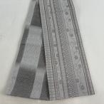 美品 半幅帯 優品 華文 唐草 灰色 化繊 中古