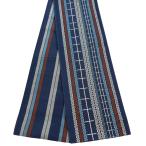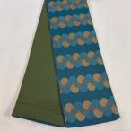 半幅帯 優品 幾何学模様 段縞 青緑 化繊 中古