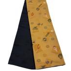 半幅帯 優品 宝尽くし 花 山吹茶色 化繊 中古