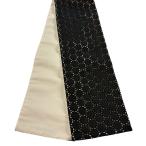 美品 半幅帯 優品 幾何学 黒 化繊 中古