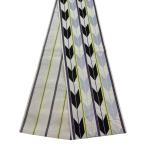半幅帯 名品 博多織 証紙 矢羽根 縞 灰白 正絹 中古