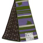 美品 半幅帯 優品 菊 縞 灰紫 化繊 中古