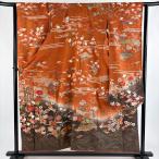 振袖 身丈155cm 裄丈64.5cm M 単衣 枝梅 松竹梅 金彩 ぼかし オレンジ 正絹 秀品 中古