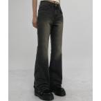 「mystic」 ブーツカットデニムパンツ SHORT ブラック レディース
