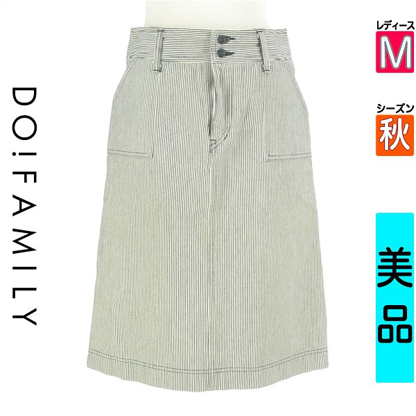 \先着50名様★全品50%OFFクーポン/ドゥファミリー DO!FAMILY スカート レディース 秋 紺色/ネイビー M 膝丈ストライプ柄デニムスカート 【中古】【古着】【大幅値下】楽天スーパーSALE