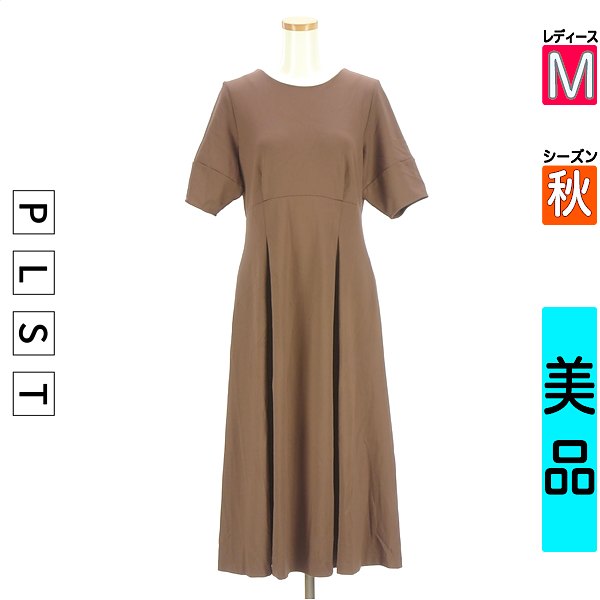 \先着50名様★全品50%OFFクーポン/ プラステ PLST ワンピース チュニック レディース 秋 半袖 ブラウン M ウエストタックストレッチロングワンピース 【中古】【古着】【大幅値下】楽天スーパーSALE