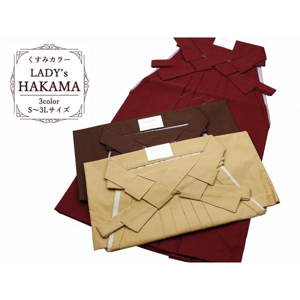 くすみカラー 婦人用 袴 無地 スカートタイプ 単品 S〜3Lサイズ 全3色 hs-112