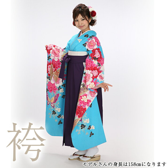 「スーパーセール半額 ★2025/12/04 20:00~2025/12/11 01:59★ 50%OFF」【レンタル】袴レンタル15点フルセット【Mサイズ/青紫丸椿(2尺袖)&水色ボカシ毬刺子(袴)】足袋プレゼント 袴 着物 フルセット レンタル 貸衣装 女性 和服 袴 はかま 卒業式 大学