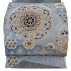 美品 袋帯 逸品 河村織物 落款あり 名物大和裂文 金糸 箔 青灰色 六通 正絹 中古