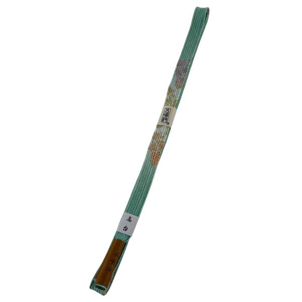 美品 帯締め 名品 無形文化財 五嶋紐 江戸組紐 薄緑 正絹 和装小物 中古
