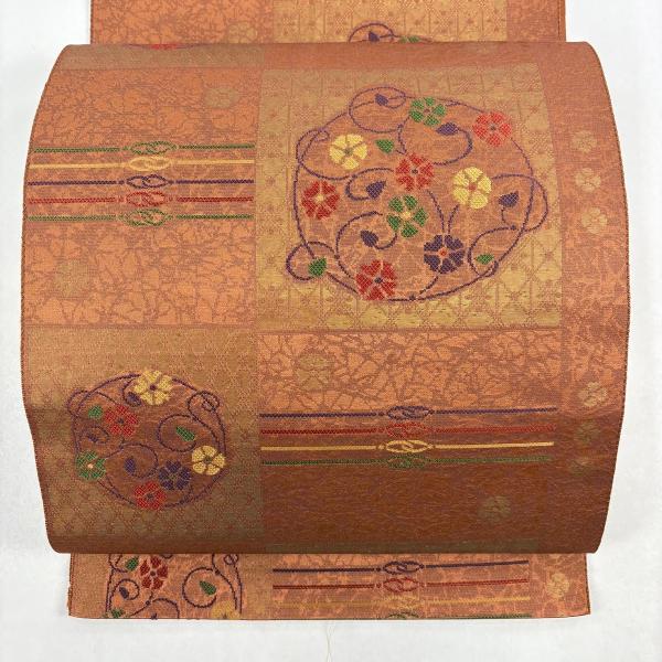 名古屋帯 優品 名物裂文様 箔 オレンジ 正絹 中古