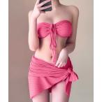 水着 「3点セット」 ストラップレスビキニ+パレオ レディース