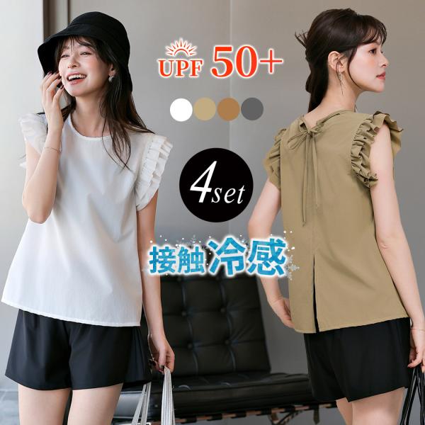 水着 体型カバー UPF50+ 紫外線対策 レディース 4点セット ビキニ ラッシュガード 水陸両用 接触冷感 フレンチスリーブ
