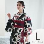 浴衣 レディース セット ニコアンティーク 高級変わり織 浴衣3点セット 黒とえんじの染分けひまわり トール(165-175cm)L 浴衣セット(ゆかた・帯・下駄)
