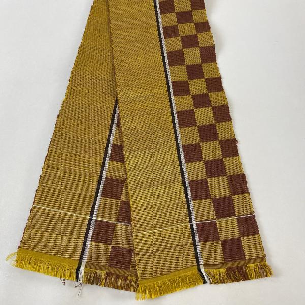 半幅帯 美品 名品 市松 縞 黄土色 正絹 中古