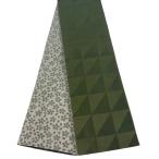 美品 半幅帯 優品 格子 幾何学模様 鶯色 化繊 中古