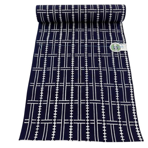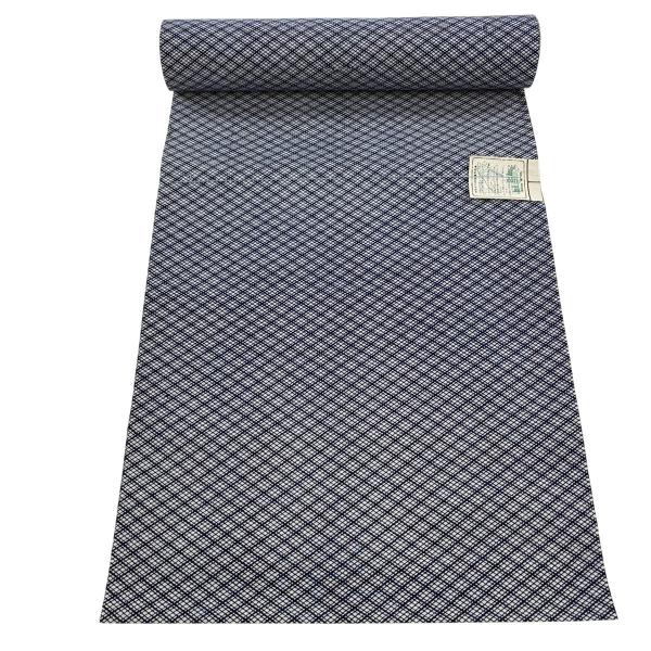 反物 優品 浴衣 斜め格子 幾何学模様 紺色 綿 中古