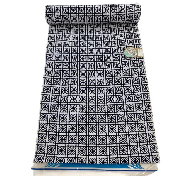 反物 優品 浴衣 格子 幾何学模様 濃紺 綿 中古