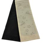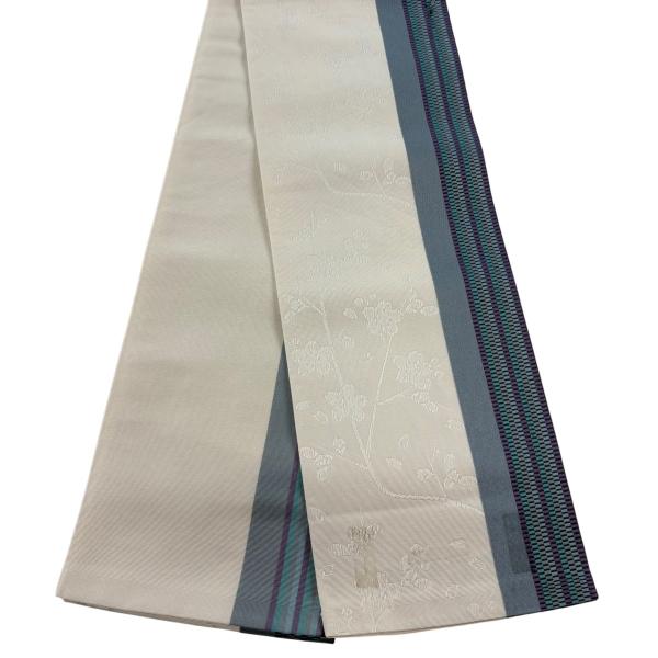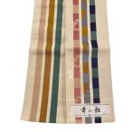 半幅帯 名品 証紙あり 博多織 枝桜 縞 クリーム 正絹 中古