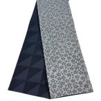 美品 半幅帯 優品 桜 格子 黒 化繊 中古