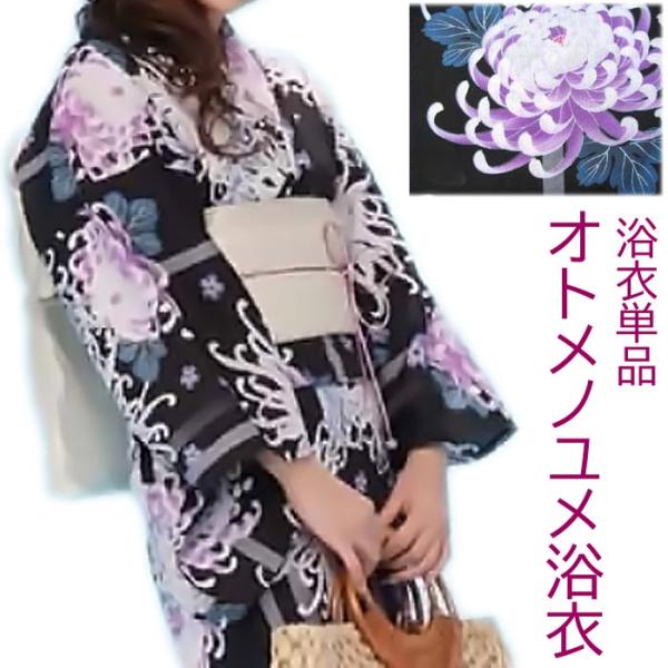姫系ゆかた“オトメノユメ”シリーズのゆかたです!ストライプに大輪の菊や桜が華やかです。ラメがキラリと光ります。2色からお選びください。 1.白 2.黒綿100%(変わり織)身丈:...