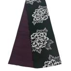 美品 半幅帯 優品 牡丹 黒 化繊 中古