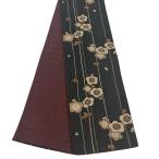 美品 半幅帯 優品 梅 縞 黒 化繊 中古