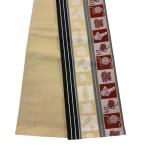 半幅帯 名品 博多織 証紙 独鈷柄 縞 クリーム 正絹 中古