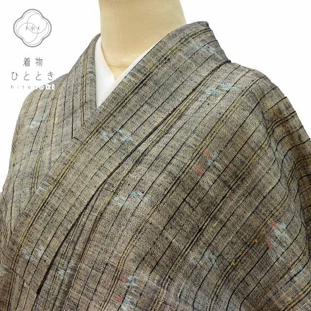 女性スタッフが運営する返品100%保証のリサイクル着物・リユース着物店商品情報 リサイクル 紬 正絹 仕立て上がり リサイクル着物 リサイクル紬 女性 裄63cm S 身丈155.5cm S グレー色系 縞...