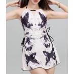 水着 蝶柄 ホルターネック スカートワンピース 水着 レディース