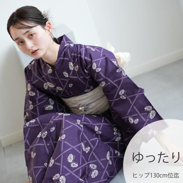 浴衣 レディース セット ニコアンティーク 高級変わり織 浴衣3点セット 紫にかごめ絞り柄の紋白蝶 ゆったり 3L 浴衣セット(ゆかた・帯・下駄) 大きい