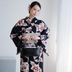 浴衣 レディース セット ニコアンティーク 高級変わり織 浴衣3点セット 大正浪漫ブラックに夢幻ねじり梅 フリーサイズ 浴衣セット(ゆかた・帯・下駄)