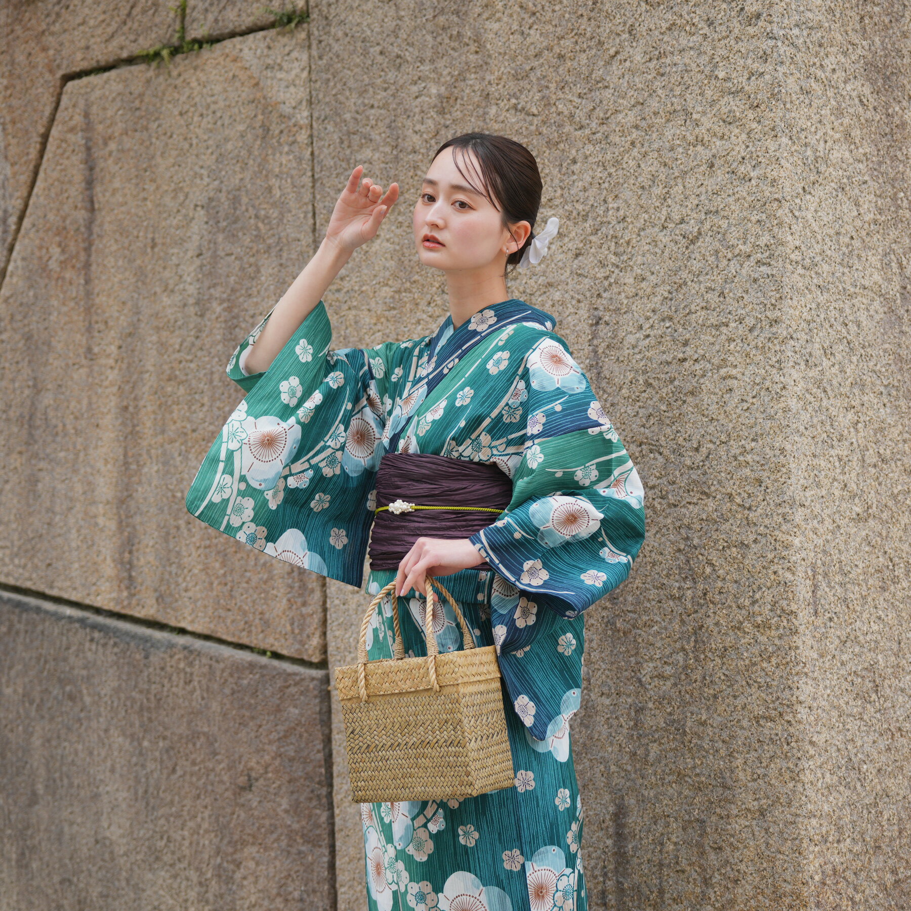【70%OFF】【utatane 高級変わり織 浴衣3点セット かすれ緑ぼかしの梅】ここでしか買えない昭和初期アンティーク復刻版 フリーサイズ 浴衣セット(ゆかた・帯・下駄)ですぐお出かけ 上質 うたたね 国産生地 国内染色