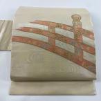 名古屋帯 優品 欄干 観世水 金銀糸 箔 クリーム 正絹 中古
