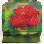 開き名古屋帯 優品 関西仕立て 牡丹 箔 緑 正絹 中古