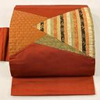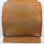 美品 袋名古屋帯 優品 霞 箔 オレンジ 化繊 中古