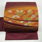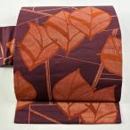 美品 名古屋帯 優品 関西仕立て 葉 幾何学模様 箔 紫 正絹 中古