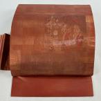 名古屋帯 優品 人物 番傘 箔 朱色 正絹 中古