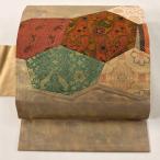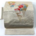 名古屋帯 優品 花鳥 扇 刺繍 箔 ベージュ 正絹 中古