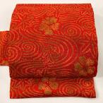 美品 名古屋帯 優品 花 流水 絞り 赤 正絹 中古
