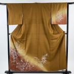 付下げ 身丈155.5cm 裄丈64.5cm M 袷 風景 金彩 縮緬 茶色 正絹 優品 一つ紋 中古