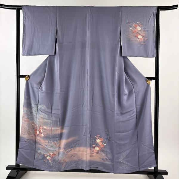 付下げ 身丈157cm 裄丈62cm S 袷 松竹梅 菊 ぼかし 薄紫 正絹 優品 中古