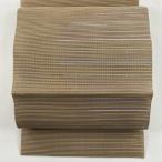 袋帯 秀品 夏帯 露芝 縞 ベージュ お太鼓柄 正絹 中古