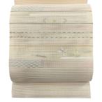 美品 名古屋帯 秀品 夏帯 幾何学模様 縞 金銀糸 クリーム 正絹 中古
