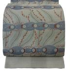 袋帯 秀品 幾何学模様 青灰色 お太鼓柄 正絹 中古