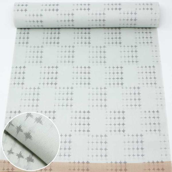 セール 東レシルック 反物 紗 紬 灰 白 十字絣 市松 夏物 薄物 夏 小紋 東レ シルック 洗える着物 きもの 送料無料 ZR