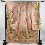 振袖 身丈165cm 裄丈69cm L 袷 辻ヶ花柄 笹 金糸 金彩 薄ピンク 正絹 名品 中古