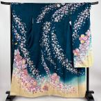 振袖 身丈163cm 裄丈69.5cm L 袷 桜 桜の花びら 箔 金彩 青緑 正絹 美品 名品 中古