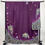振袖 身丈171cm 裄丈68cm L 袷 牡丹 菊 金彩 紫 正絹 秀品 中古