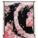 振袖 身丈158.5cm 裄丈67cm M 袷 桜 流水 金彩 絞り 黒 正絹 名品 中古